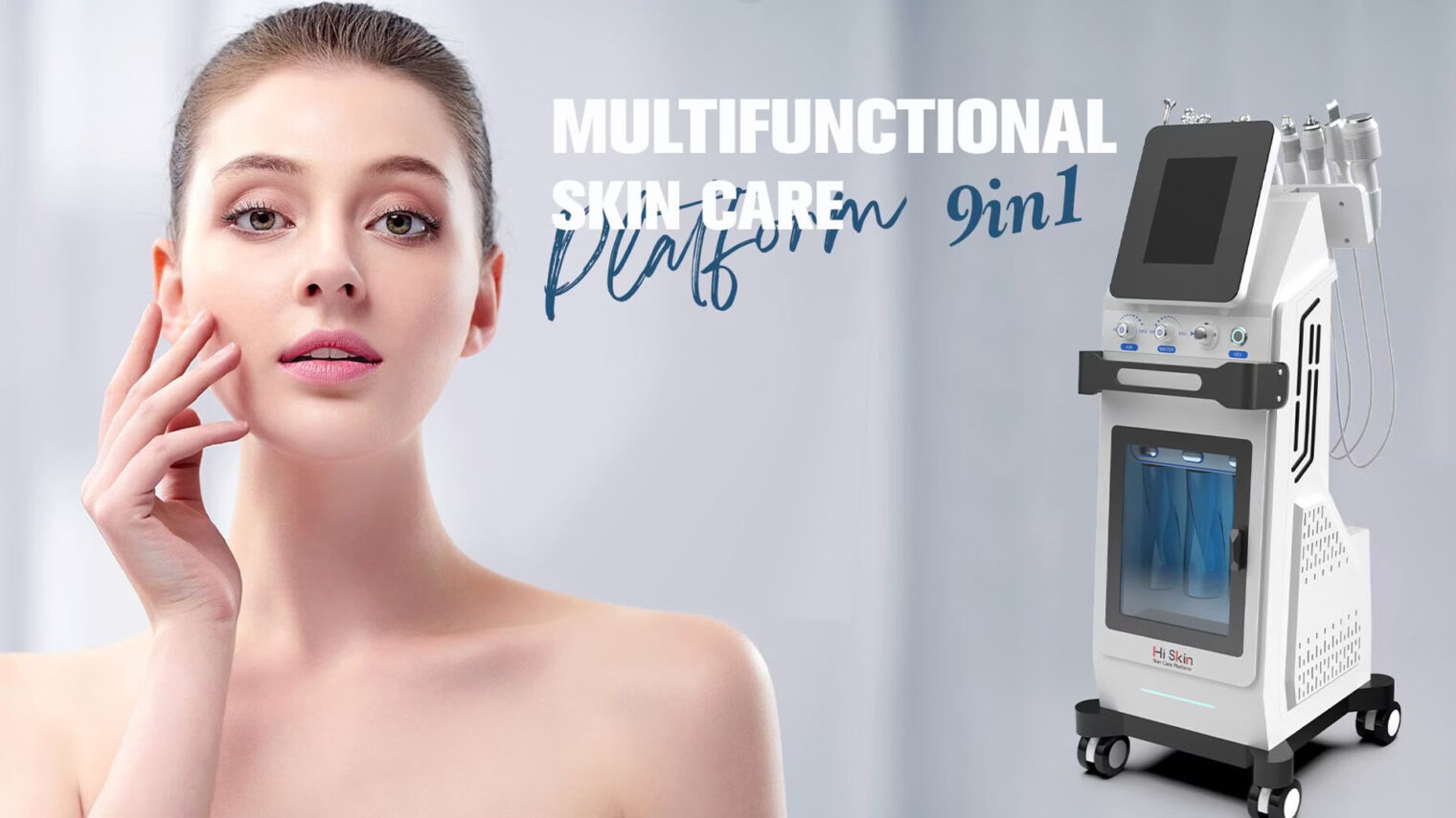 Aparat multifuncțional 9-în-1 pentru îngrijirea pielii este un echipament profesional avansat, conceput pentru tratamente faciale complete de curățare, hidratare, revitalizare și rejuvenare cutanată. Tehnologia HI-Skin utilizează un proces inovator de purificare a apei, transformând-o în apă oxigenată și apă cu hidrogen activ.