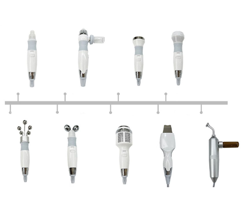 Este un aparat profesional echipat cu nouă aplicatoare dedicate, concepute pentru tratamente dermato-estetice non-invazive. Aceasta integrează tehnologii precum hidrodermabraziune, ultrasunet, radiofrecvență bipolară, microcurenți și crioterapie, permițând curățarea profundă a pielii, hidratarea intensivă, stimularea colagenului și tonifierea țesuturilor. Sistemul asigură control precis al parametrilor de lucru, adaptabilitate pentru diferite tipuri de piele și proceduri sigure, eficiente și reproductibile în practica profesională.