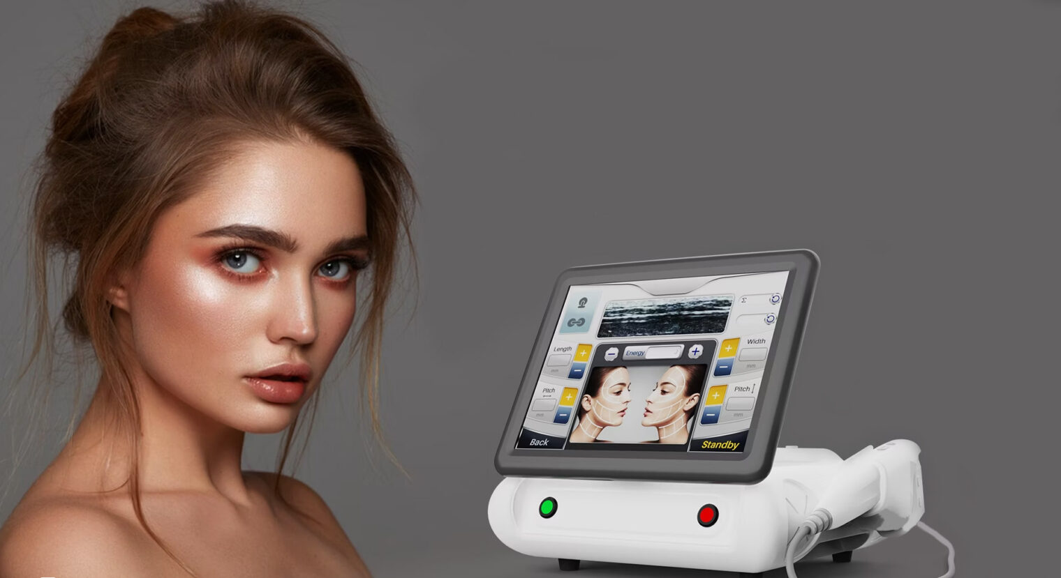 Pentru tratamentele faciale, mânerul HIFU 3D este ideal pentru reducerea ridurilor de pe frunte și gât, redefinirea liniei mandibulare, diminuarea bărbiei duble și conturarea feței în formă de V-line, contribuind totodată la îmbunătățirea texturii și tonusului pielii.