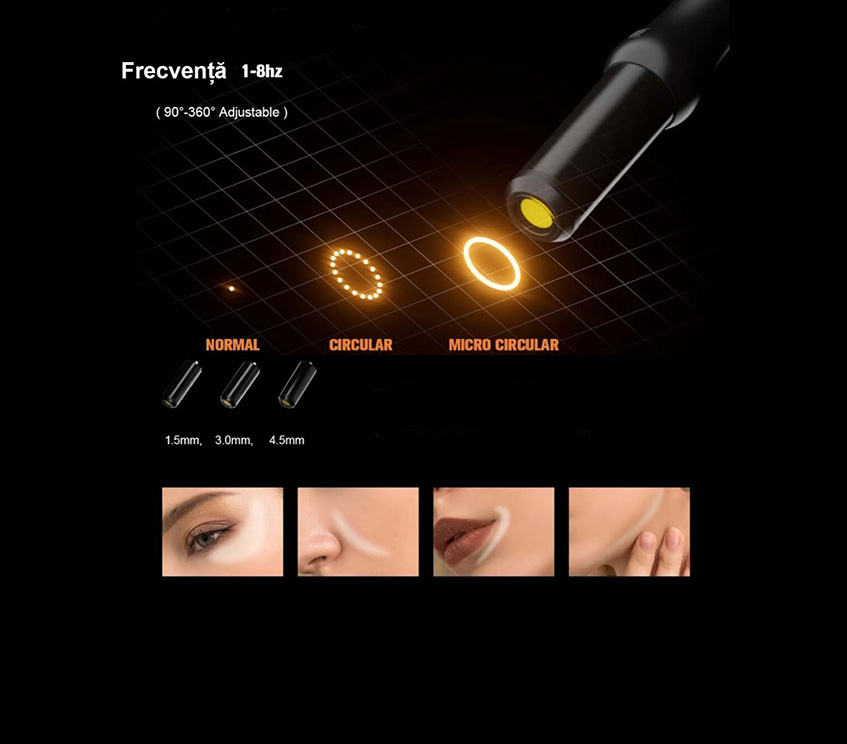 Cartușele dedicate pentru față, cu adâncimi de 1,5 mm, 3,0 mm și 4,5 mm, permit personalizarea completă a tratamentului în funcție de zona și stratul pielii vizat.