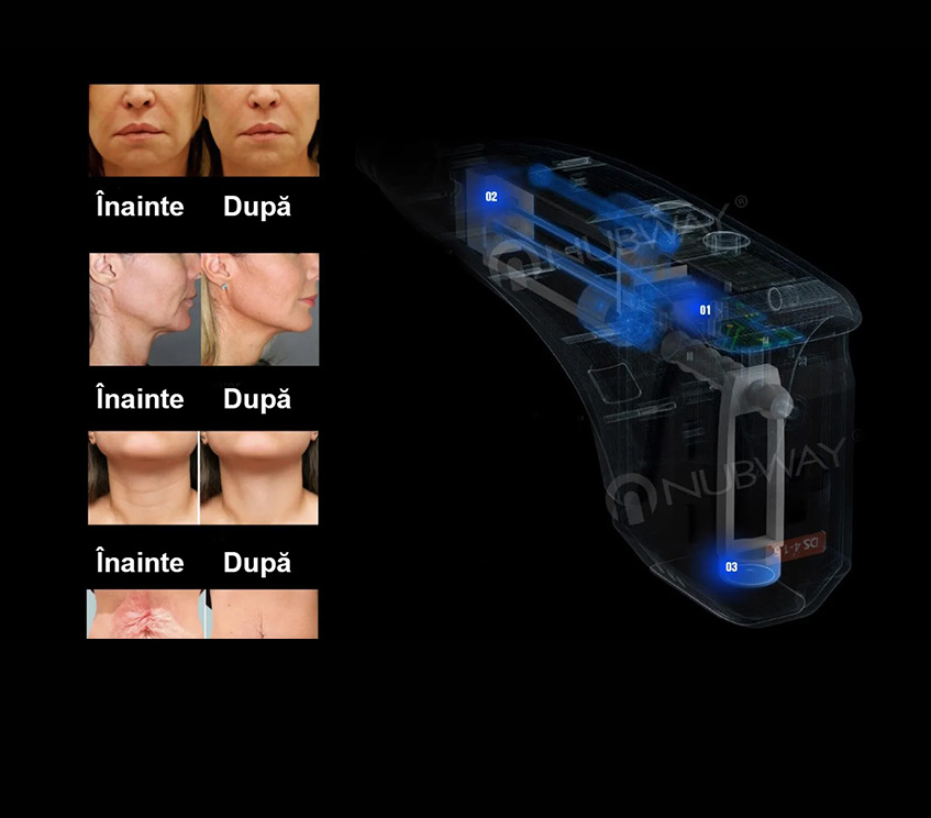 Rezultatele obținute sunt susținute de multiple exemple Inainte & Dupa, care evidențiază îmbunătățiri semnificative în ceea ce privește fermitatea pielii, reducerea ridurilor, redefinirea conturului facial și uniformizarea texturii cutanate. Acest sistem este ideal pentru clinici și centre estetice care urmăresc tratamente non-invazive, eficiente și cu rezultate vizibile și de durată.