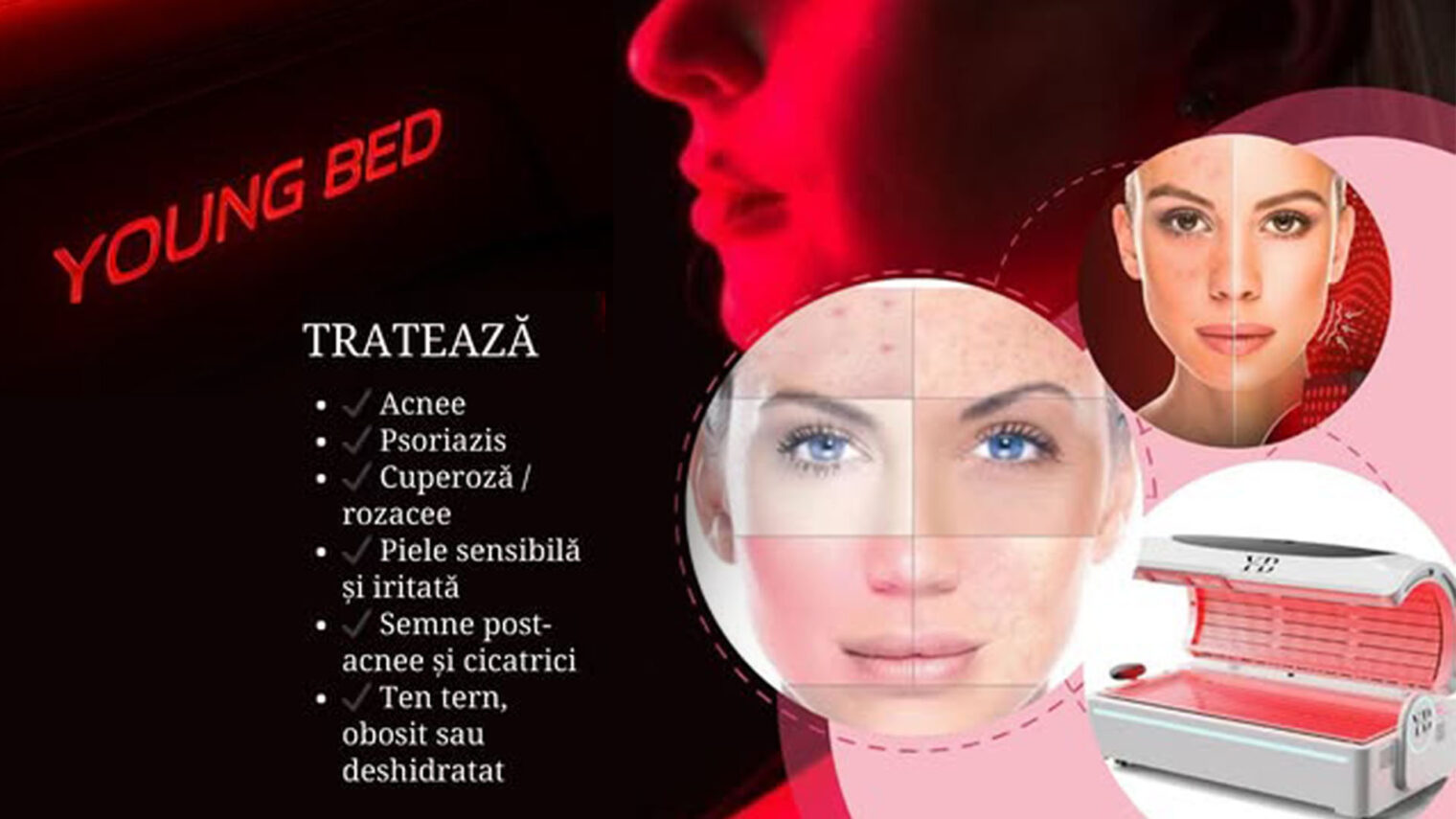 Este un sistem profesional tip pat, dedicat terapiei complementare de fotoregenerare moleculară cu lumină roșie și infraroșie. Conceput pentru regenerare celulară, rejuvenare cutanată și susținerea proceselor naturale de refacere ale organismului, Young Bed oferă o experiență non-invazivă, relaxantă și complet nedureroasă, fără timp de recuperare.